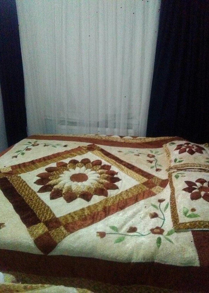 Çift kişilik kadife yatak örtüsü 2 yastık 1 kirlent var