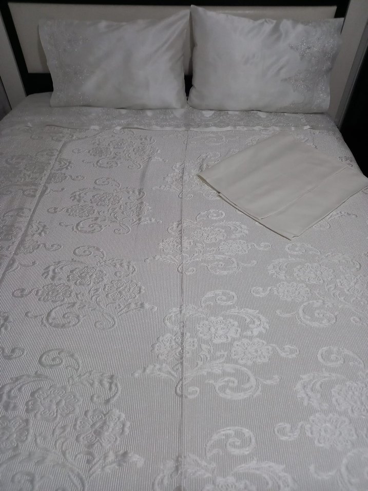 çift kişilik pike - çarşaf - 4 yastık kılıflarından oluşan beyaz pike takımı