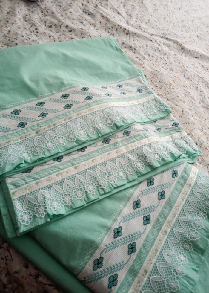 Çeyiz için yaptırıldı. Renk mind yeşili kumaşı pamuklu