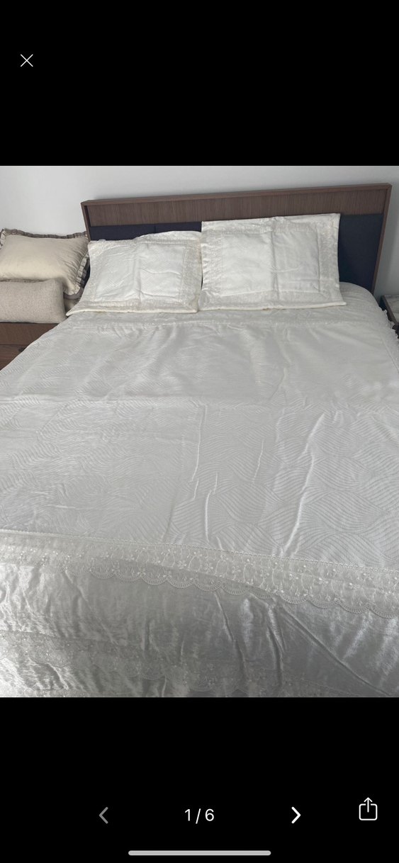 Çeyizim için dikilmiş hiç kullanılmadı Parlak beyaz, düz yüzeyli ve ince dantel detaylı yatak örtüsü, yatağa zarif bir dokunuş katar. ️