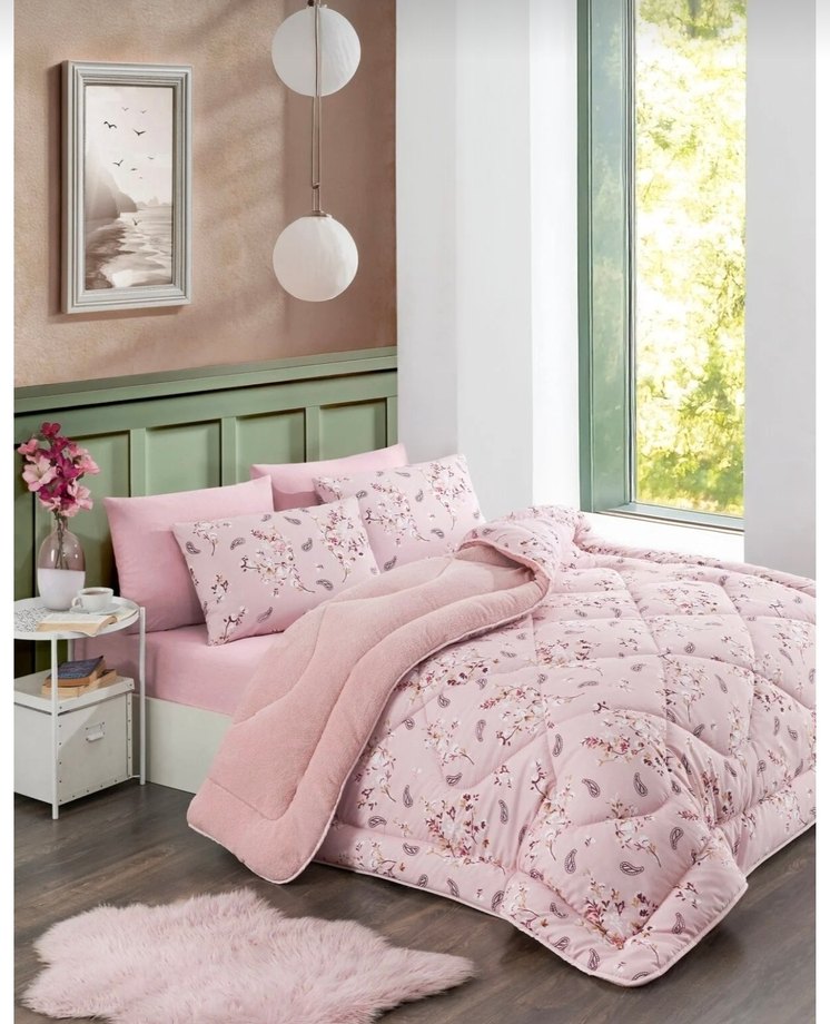 Çift kişilik Pembe Çiçek Desenli Çift taraflı Yorgan