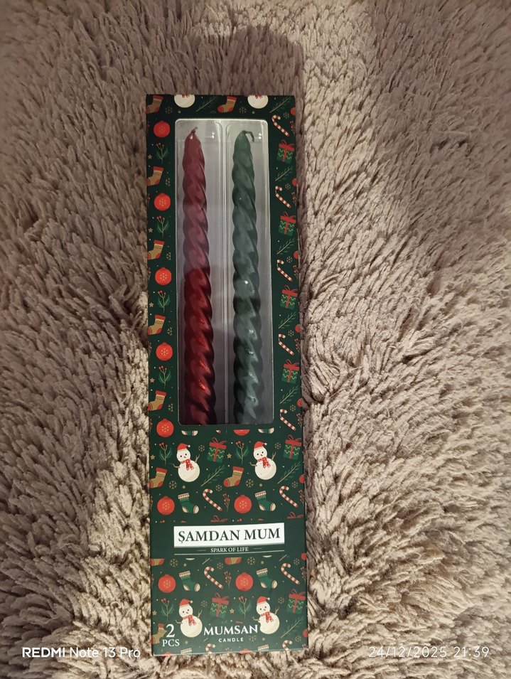 Koyu kırmızı ve yeşil renklerde iki spiral mum seti. ŞAMDAN MUM yazılı kutuda sunulmaktadır. ️ herhangi bir problemi yok ihtiyaç fazlası diye satılık alıcısına hayırlı olsun NOT sayfamda bay, bayan, çocuk elbise ayak kabı vs ile elektronik eşya züccaciye, tuhafiye vs her türlü ürün bulacağınız geniş ürün yelpazesine sahibiz (2. el ve sıfır) ürünlere göz atınız. #çocuksweatshirt #tişort #bornoz #çocukelbise #elbise #kısakolelbise #gömlek #kadınsweatshirt #elbise #kaban #pantalon #mont #telefon #soğutucu #defter #kulaklık #kutu #yüzük #tespih #omuzçanta.#ayakkabı #Bot
