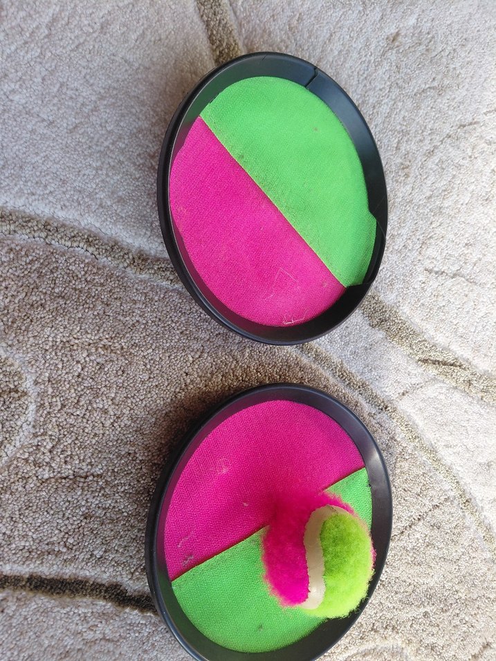Canlı pembe ve yeşil renklerde yapışkanlı top yakalama oyunu