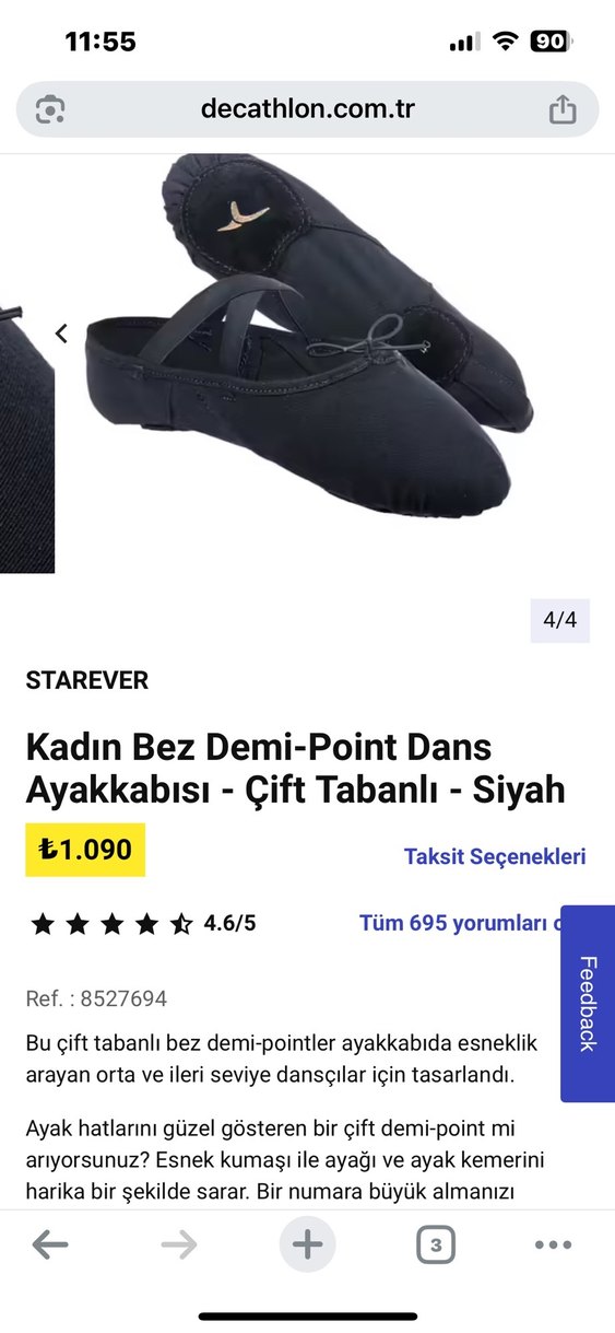 Esnek çift tabanlı siyah kadın demi-point bale ayakkabısı. Orta ve ileri seviye dansçılar için, cırt cırtlı bantlı rahat kullanım sağlar.