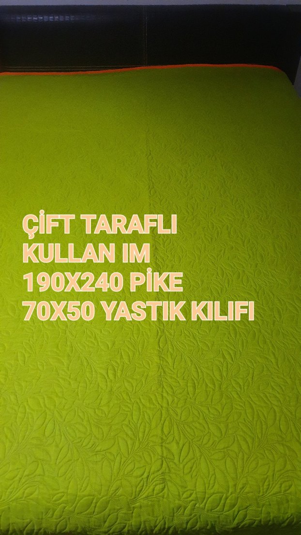 Çift taraflı 190x240 cm pike ve 70x50 cm yastık kılıfı. Kullanıma uygun, rahat bir takım. ️