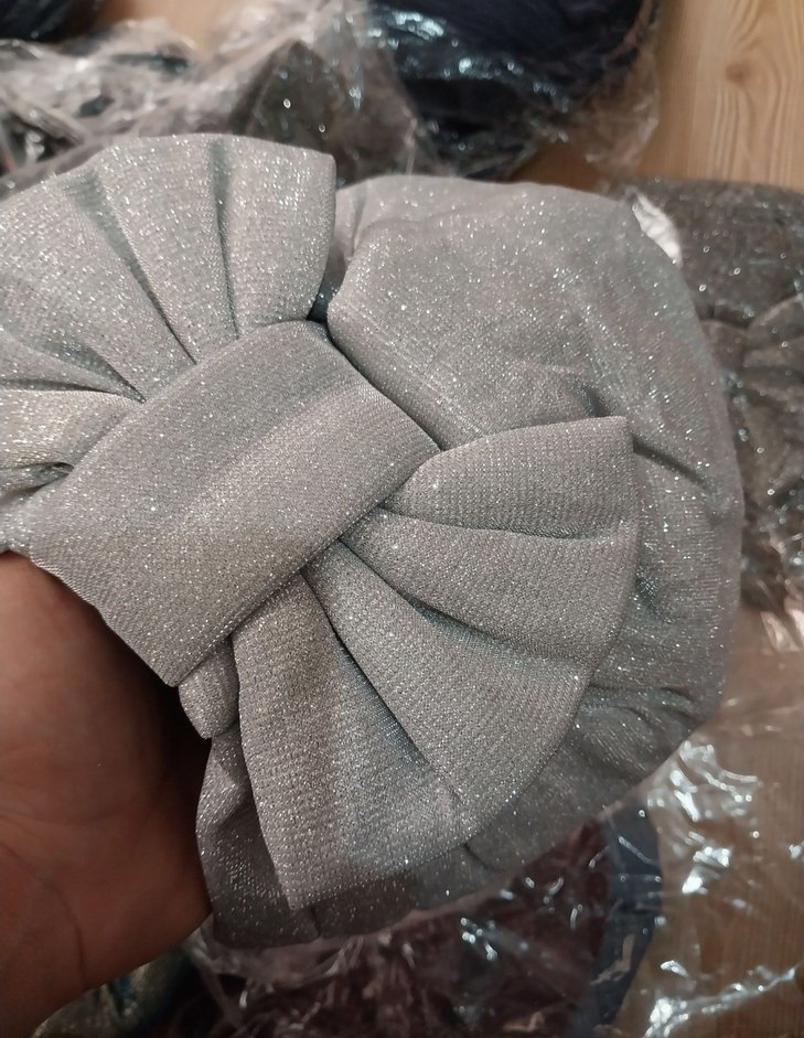 gümüş simli kumaş çift taraflı kullanılır ister çapraz kısmını isterseniz fiyonklu kısmını kullanabilirsiniz içi full dolguludur içine bone topuz tokası kullanmanıza gerek yoktur standart kalıptır sıfır paketinde gönderilmektedir