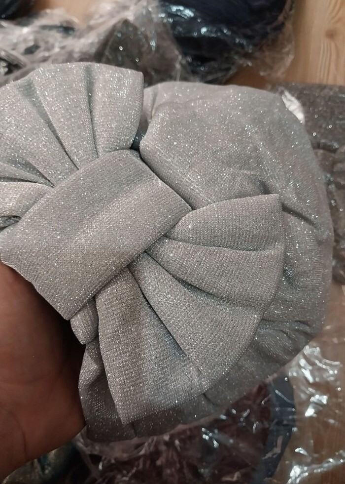Gümüş simli kumaş çift taraflı kullanılır ister çapraz kısmını isterseniz fiyonklu kısmını kullanabilirsiniz içi full dolguludur içine bone topuz tokası kullanmanıza gerek yoktur standart kalıptır sıfır paketinde gönderilmektedir