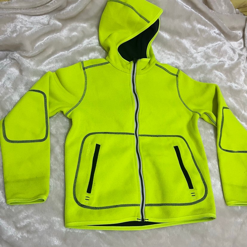 Sarı-lacivert renkte, fermuarlı ve kapüşonlu . Uzun kollu, dış mekan kullanımı için uygun, sokak modasına uygun kesimi ve cepleri bulunur.