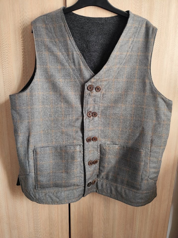 çift taraflı giyilebilen Düğmeli Gri Keten Erkek Yelek