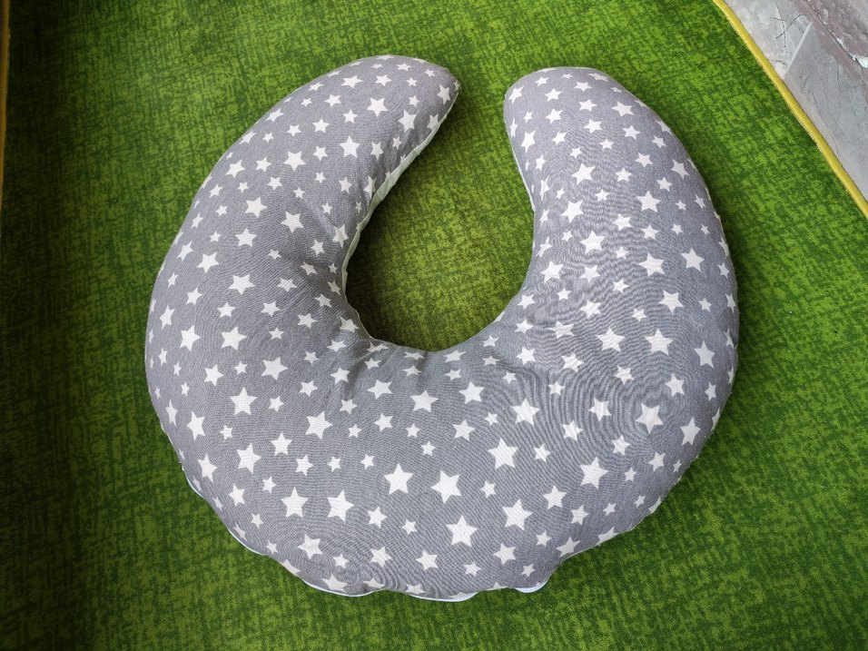 Yıkanabilir Çift taraflı Kılıf.Gri zemin üzerine beyaz yıldız desenli, hamilelik ve emzirme için destek sağlayan konforlu yastık.