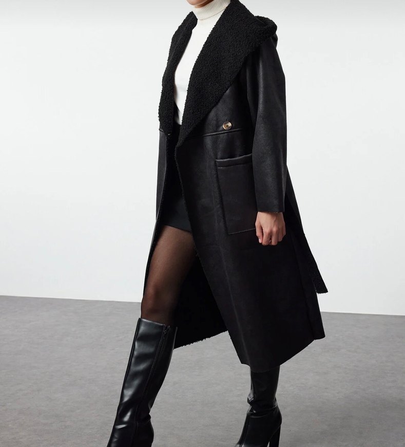 Çift taraflı hem kürklü hem deri görünümlü kaşe mont