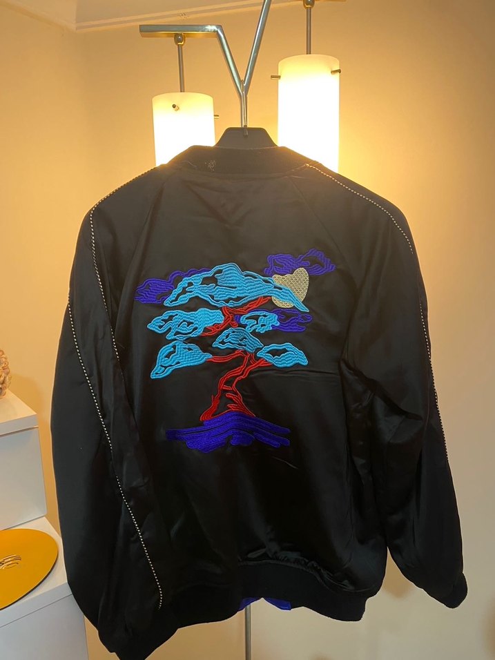 Kadınlar için çift taraflı bol kesim,baskılı, saten dokulu, fermuarlı ve kesik yakalı uzun kollu midi boy ceket. Sokak stiline uygun şık bir parça.
