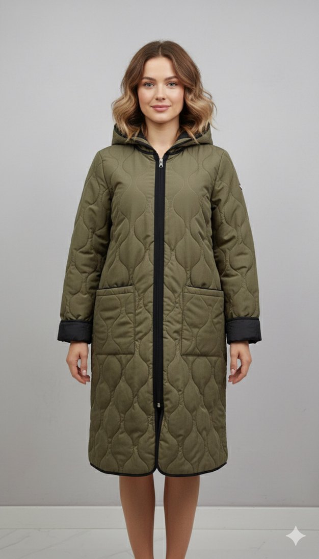 Çift taraflı kapitone kapşonlu mont