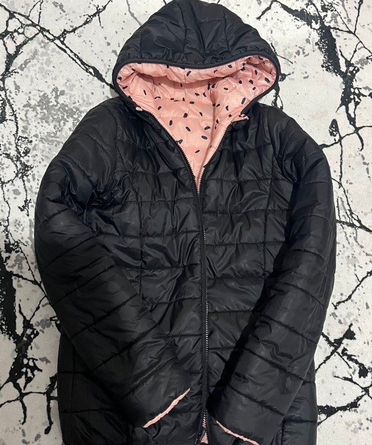 Siyah renkli, kapüşonlu fermuarlı, uzun kollu kadın kışlık mont. günlük rahat kullanıma uygun.