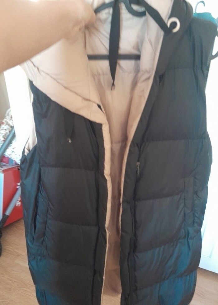 Sisme mont hic giyilmedi yenidir,uzundur .bir tarafi siyah bi tarafi krem reng