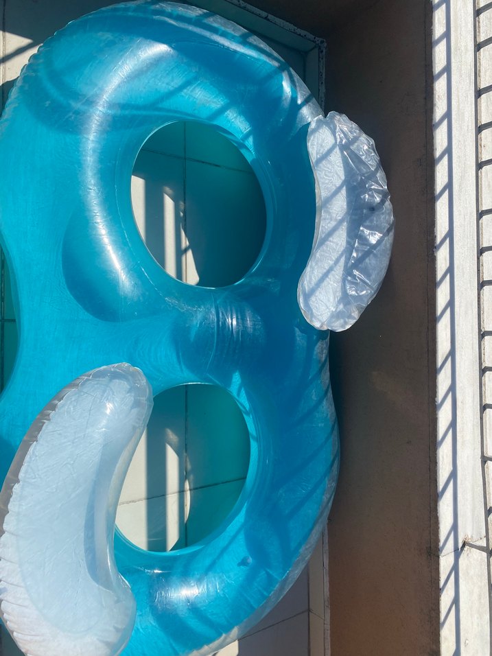 Intex Çift Taraflı Koltuk Simit 198 Cm- Mavi Su Dünyası az kullanıldı neredeyse yeni koltuk kisminin bi tarafinda cizik var tam olarak sismiyor ancak pek fark etmiyor resimde dikkat edersiniz ki sadece tek tarafinda var onun disinda baska defosu veya sikintisi yok aklinizda bir fiyat varsa lutfen soyleyin İki büyük yuvarlak açıklığı ve beyaz detayları olan açık mavi şişme su oyuncağı.