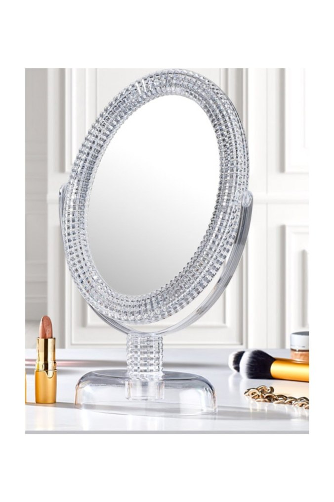 Oval masaüstü makyaj aynası, dokulu çerçeve ve sağlam taban ile detaylı bakım için uygundur. Bir tarafı normal görüntü diğer tarafı yakın görüntüdür ÇERÇEVESİ ŞEFFAFTIR ORTALAMA BOYU 30 CM'E YAKINDIR