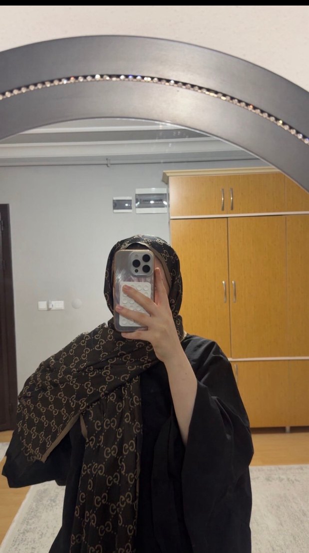 Saten dokulu, drapeli tasarıma sahip siyah kadın şalı, minimalist ve mütevazı sokak modası için uygundur.