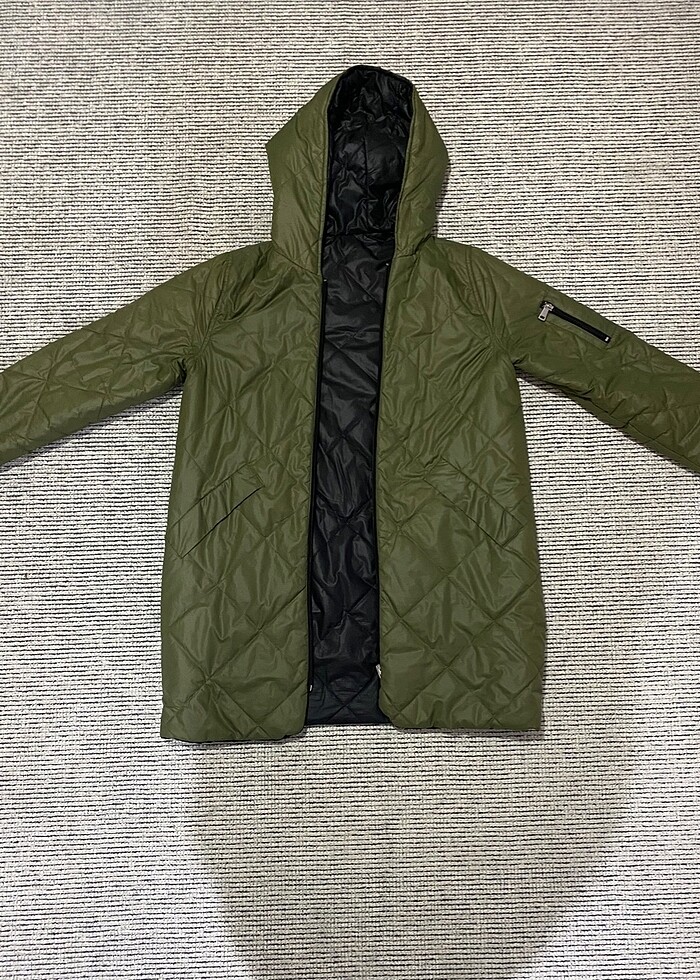 Şişme mont uzun, herkes için çok rahat kullanıma sahip, lacivert kısımdaki cepte sökülme var sadece. Dikim yapılabilir kendim yapmak istemedim. Yeşil ve lacivert olarak kullanılabilir.