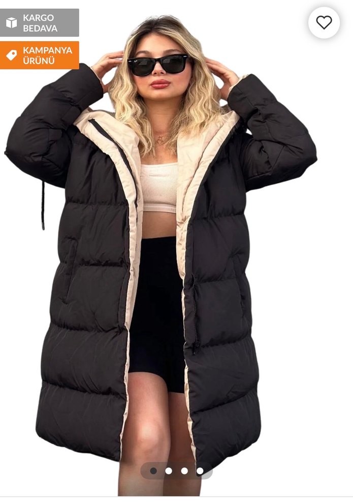 Çift taraflı uzun şişme mont