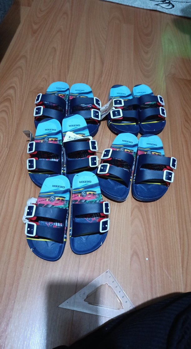 Renkli baskılı tasarıma sahip, çift tokalı kauçuk erkek terlik. Trend sokak stili için rahat ve günlük kullanım uygun. 26.27.28.29 numaraları mevcuttur ufak tefek soyulmalar vardır ürün hiç kullanılmadi etiketli