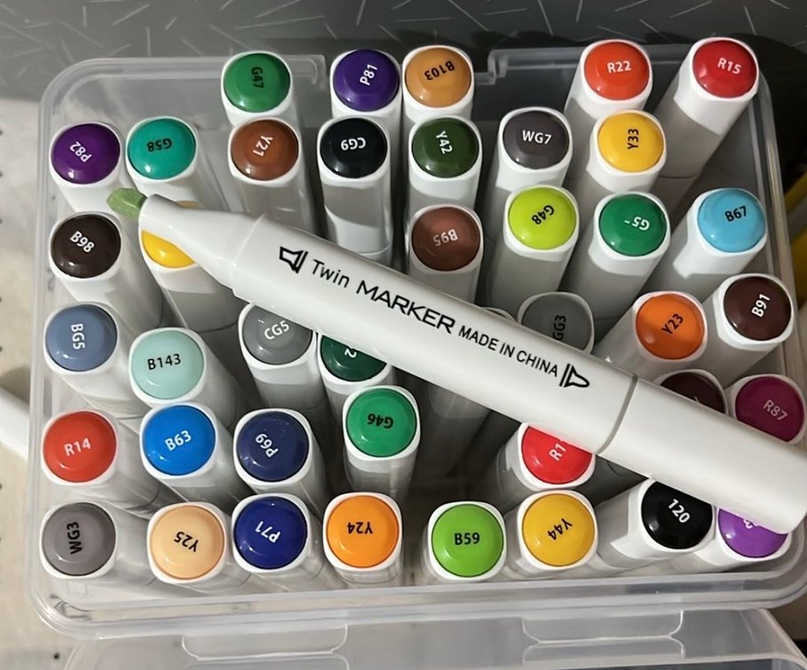 Çift uçlu beyaz marker kalem seti, çeşitli canlı renkler ve kodlarla (43, WG7, B59, R22, 863) üretilmiştir. Tane fiyatıdır. ✨ İlan açtırabilirsiniz. Normalde tanesi 70-80 arası satılır fakat elimde fazla olduğu için uyguna veriyorum. Hiç kullanılmamıştır. Keyifli alışverişler