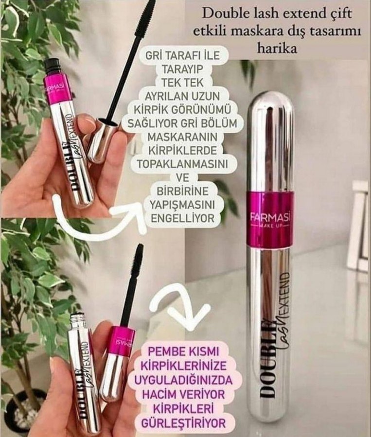 Çift uçlu maskaranın gri tarafı kirpikleri ayırır ve topaklanmayı önler, pembe tarafı ise hacim verip kirpikleri gürleştirir.