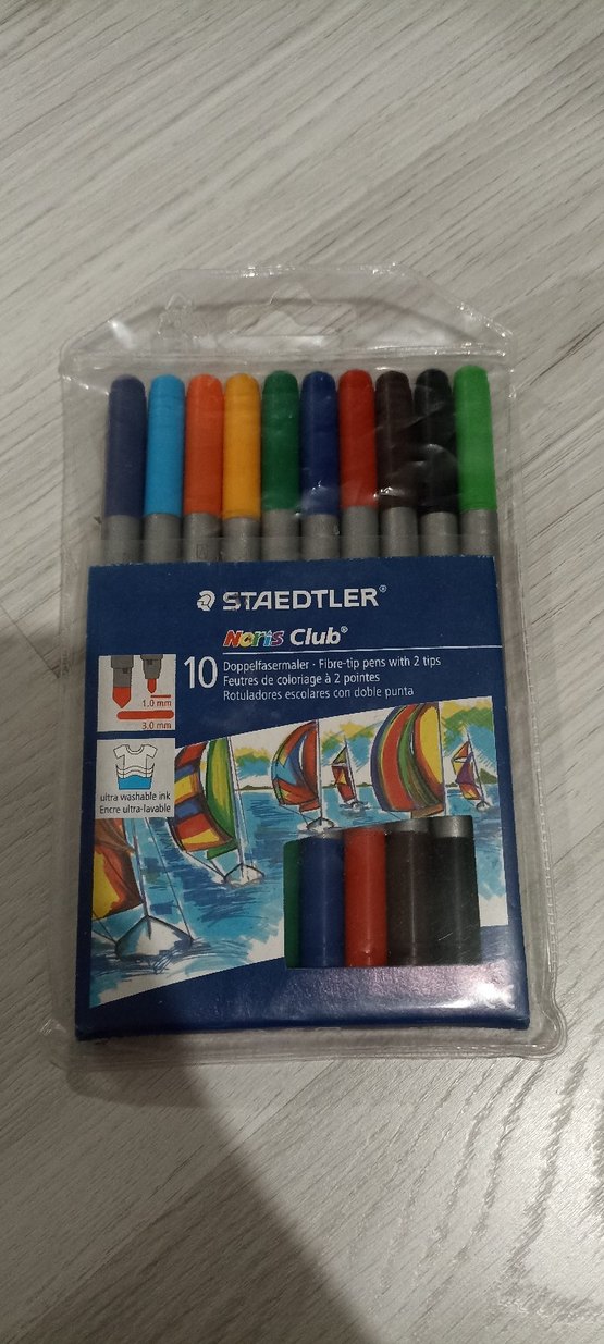 Staedtler çift uçlu keçeli kalem seti, 10 farklı canlı renkte kalem içerir. İnce ve kalın uçlarıyla çeşitli kullanım sağlar. Mürekkep yıkanabilir özelliktedir. ️