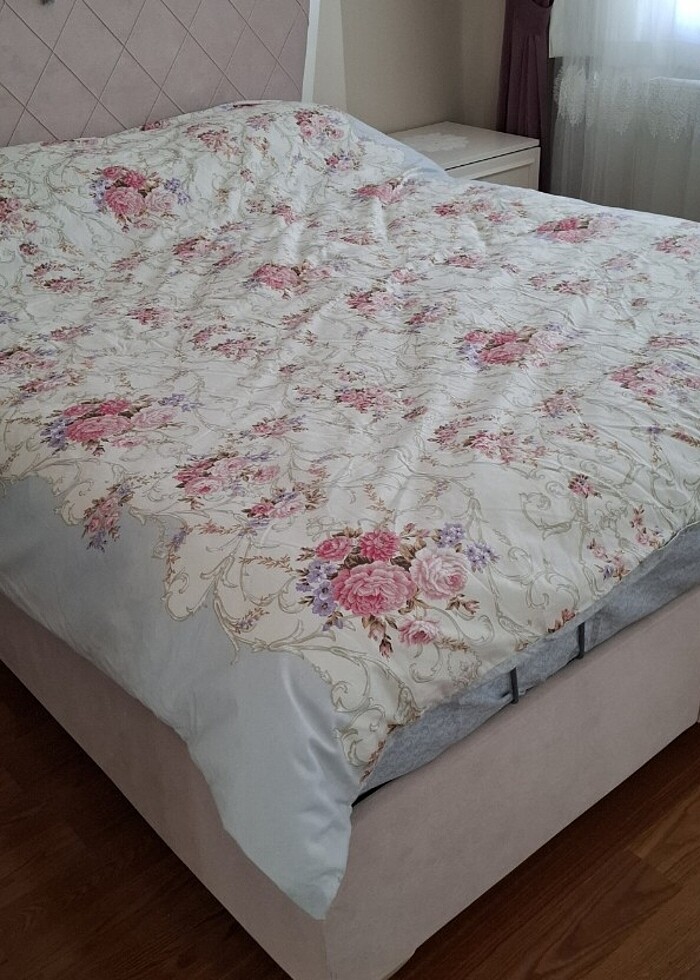 desenli çift kişilik nevresim. deneme amaçlı bir gece serildi. alan kişi yıkatıp kullanabilir. Sıfır, yeni ayarında.