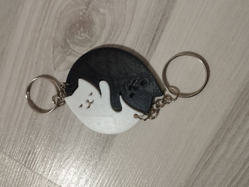 Siyah beyaz kedi figürlü, zincir detaylı,çiftler için güzel hediyelik anahtarlık.