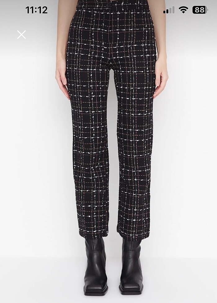 Yüksek bel. Cigarette pantolon. Karelidir. Dokumadır. Pamukludur. Boru paçalıdır. Cepsizdir.