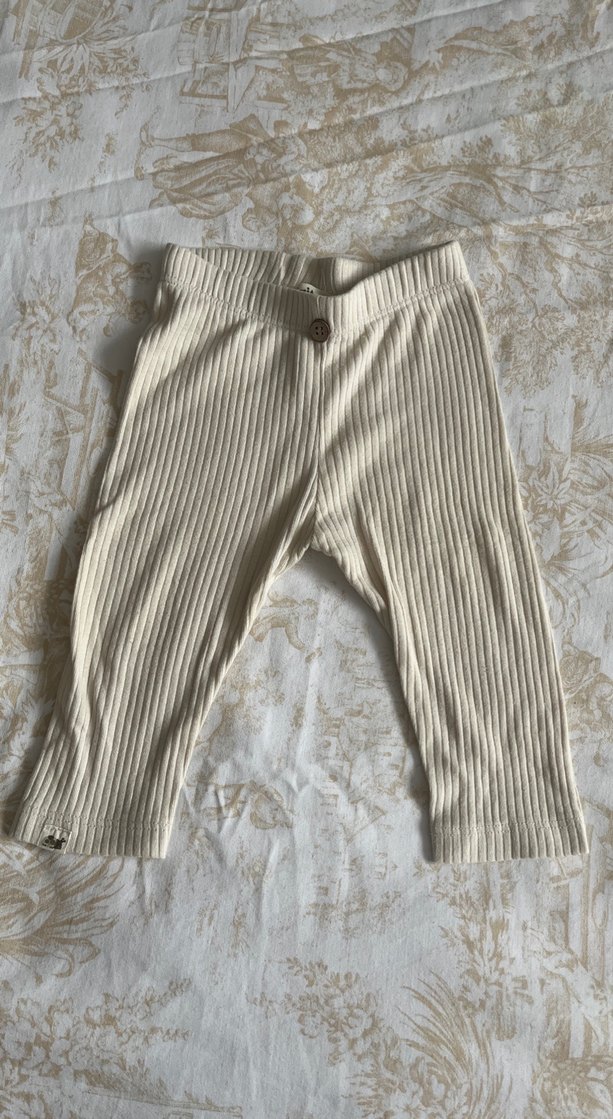 Düğmeli bel detaylı, yumuşak keten kumaştan beyaz triko kız çocuk taytı. Rahat ve sade normcore tarzda, vücuda oturan kesim.