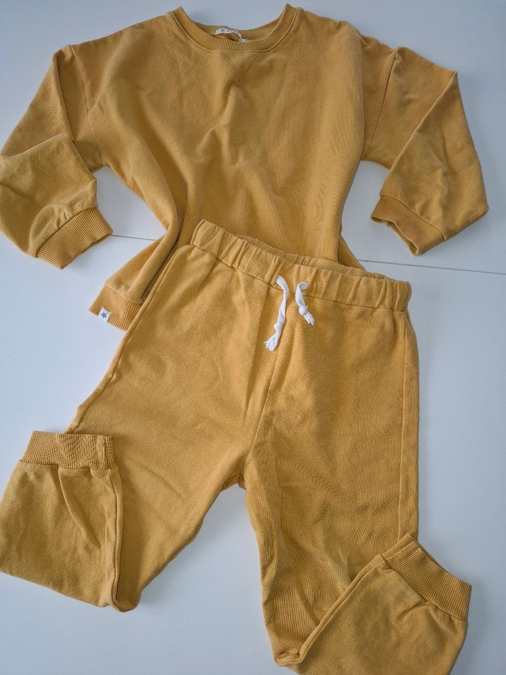 Pastel sarı renkli, bol kesim eşofman takımı. Uzun kollu, yuvarlak yaka ve yumuşak kumaştan üretilmiştir. Bel kısmı lastiklidir, sade ve rahat bir sokak stili sunar.