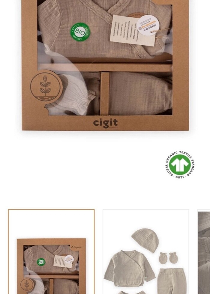 Cigit Organik müslin hastane çıkışı seti