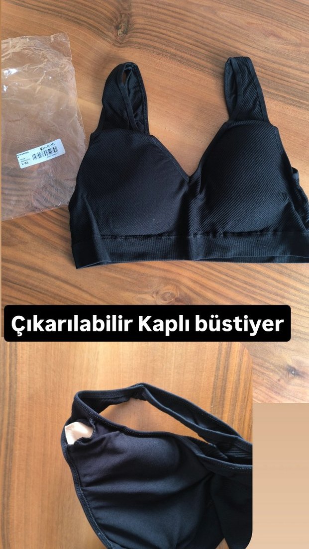 Çıkarılabilir kaplı, siyah biker tarzı kısa uzunlukta ve desensiz büstiyer. Athleisure kullanıma uygundur.