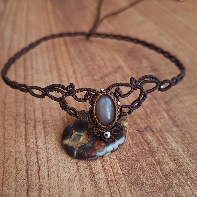 Kahverengi aytaşı ile tasarlanmış tiara olarakta kullanılabilecek minimal choker #makrome #aytaşı #tiara #festival #bohem #makrometakı #makromekolye #aytaşıkolye #elyapımı #tasarımtakı #tasarım