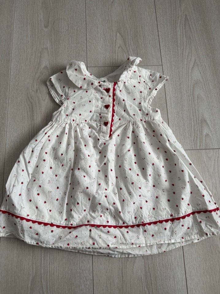 düğmeli, kısa kollu, V yakalı, pamuklu, bol kesim vintage tarzı kız çocuk elbisesi.