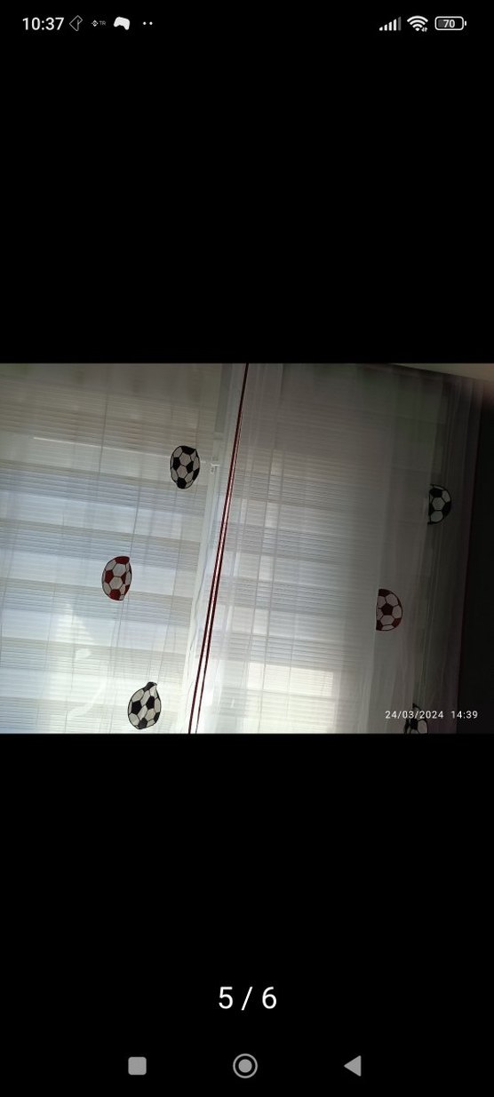 çilek marka Beyaz çizgili, modern tarzda ciperde. Hafif tonlarda ve futbol topu desenli. Hafif ışık geçirgenliğine sahip. ⚽