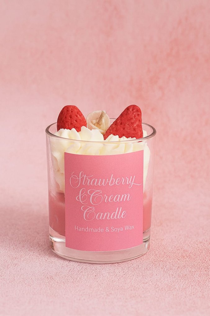 Çilek ve Krem Kokulu Pembe Mum