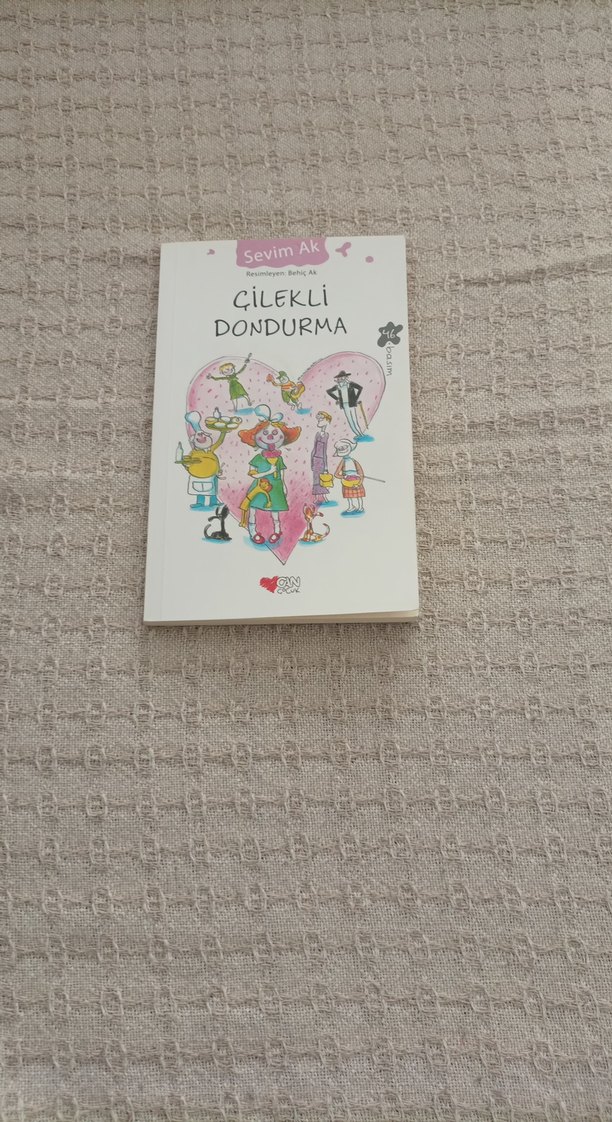 Çilekli Dondurma kitabı.Yaş kategorisi 8,9,10+.Beyazlık iz gibi şeyleri vardır.Sayfalarda bükme izleri vardır.119 sayfa.