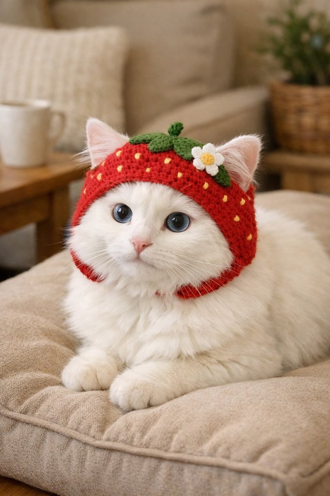Çilekli Kedi Şapkası