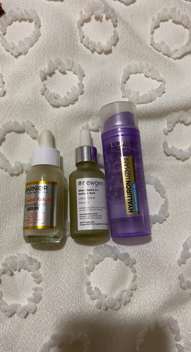 Bu set, cilt parlatıcı vitamin C ve salisilik asit serumu, hyaluronik asit serumu ve nemlendirici vitamin C serumu içerir. Cilt parlaklığı ve nem için uygundur.