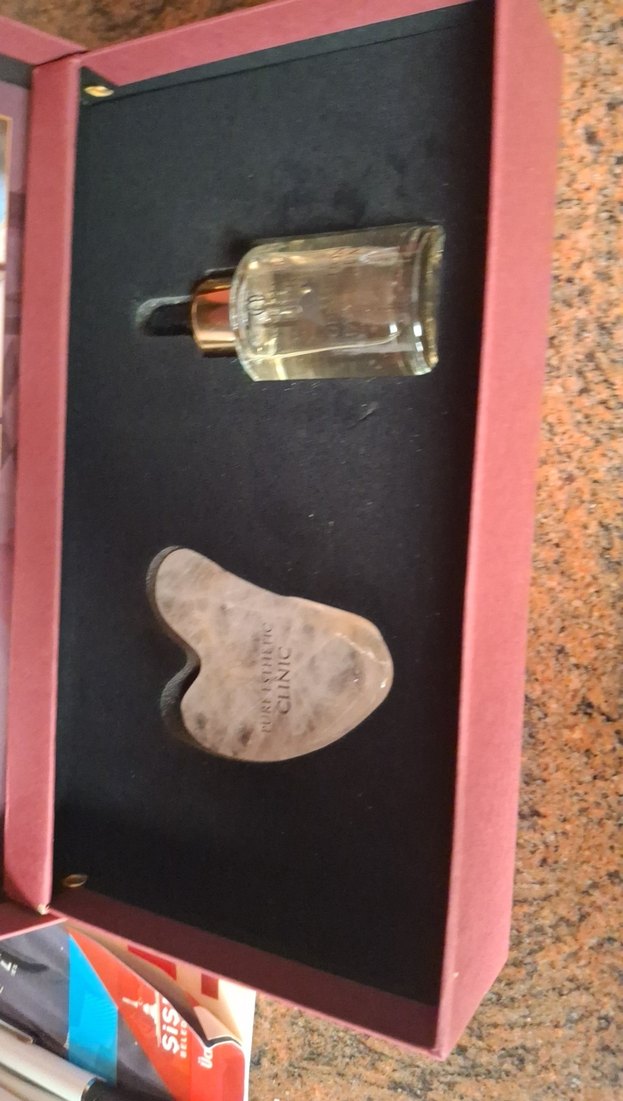 Bu cilt bakım seti, yüz bakımı ve rahatlama için serum şişesi ve kalp şeklinde masaj taşı içerir. ♀️