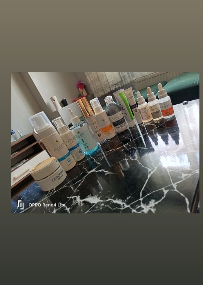 Duaderm marka cilt bakım ürünleri.Ev kurdan aldım taksidini hâlâ ödüyorm 6.800 e aldım hepsini yarı fiyatından satıyorum.Tonik den az kullandım el kreminden bir iki kez sürdüm yüz toniğini kullandım koydum kullandım yere kadar. Diğer ürünlerden bir kez kullandım sadece yenilerdir benim cildime uymadı.