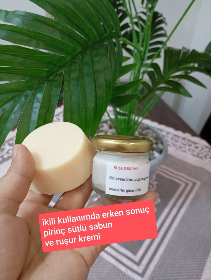 doğal pirinç sütlü sabun ve doğal ruşur kremi ile leke ve cilt rengi ni açmaya etkili ikili set #ciltbeyazlatici#rusurkremi#sabun#pirinclisabun#dogalkrem#bitkiselkrem