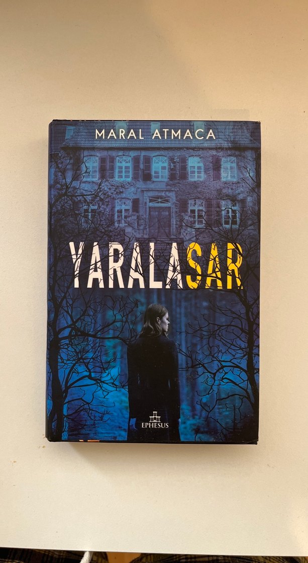 Maral Atmaca'nın YaralaSar adlı romanı, eski bir bina önünde duran bir kişiyi ve karanlık atmosferi yansıtan kapakla dikkat çekiyor.