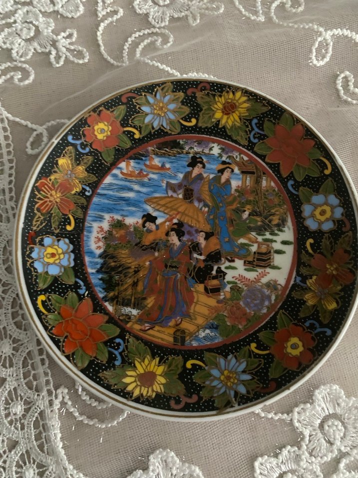 Üzeri el boyama,yaldızlı ve mine işçilikli mükemmel desenleriyle 13 cm boyunda porselen tabak NOT:vazoları da var diğer ürünlerime bakabilirsiniz