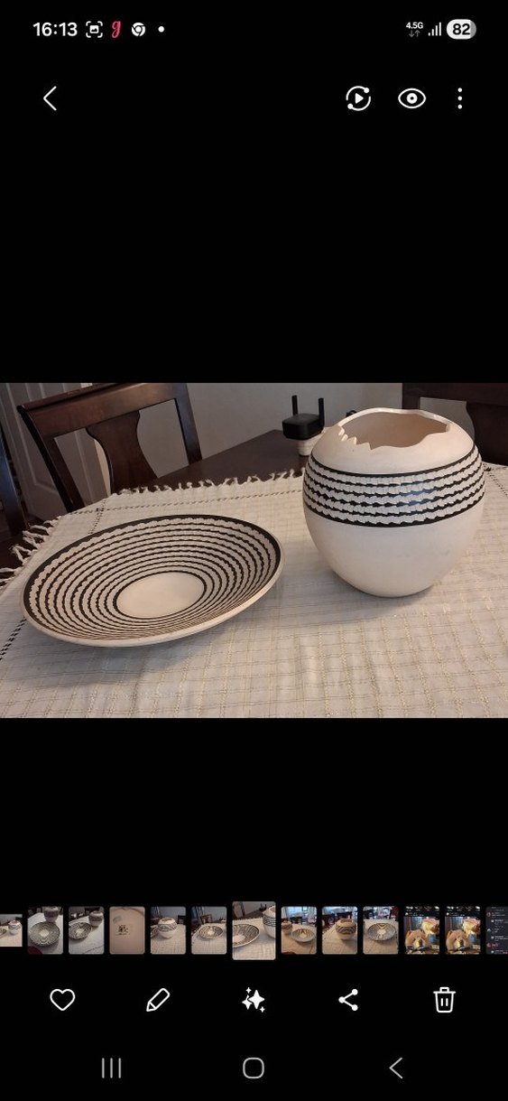 Çin malı Ekru Renkte Siyah Desenli Seramik Vazo ve Tabağı Tabak çapı 36 cm Vazo 21 /21 cm