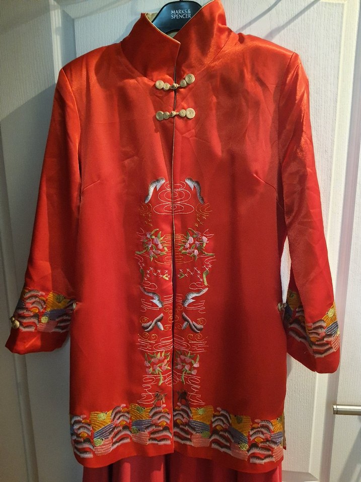Etiket XXL yazıyor ama Çin bedeni o. Medium-Large arası diyebilirim. Kumaşı ipek olabilir. Çok güzel. Yıllardır sadece bir kere azıcık giyme fırsatı bulduğum için satıyorum. Bu şıklığı değerlendirebilecek kişiye gitsin.