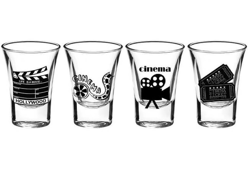 Sinema temalı Shot Bardak Tamamı cam malzemeden üretilmiştir. Sadece elde yıkamaya uygundur. Sıfır üründür, hiç kullanılmadı. Ürün Ebatları ; Çap : 4,5 cm ; Yükseklik: 7 cm ( Elimde 2 set vardır.)